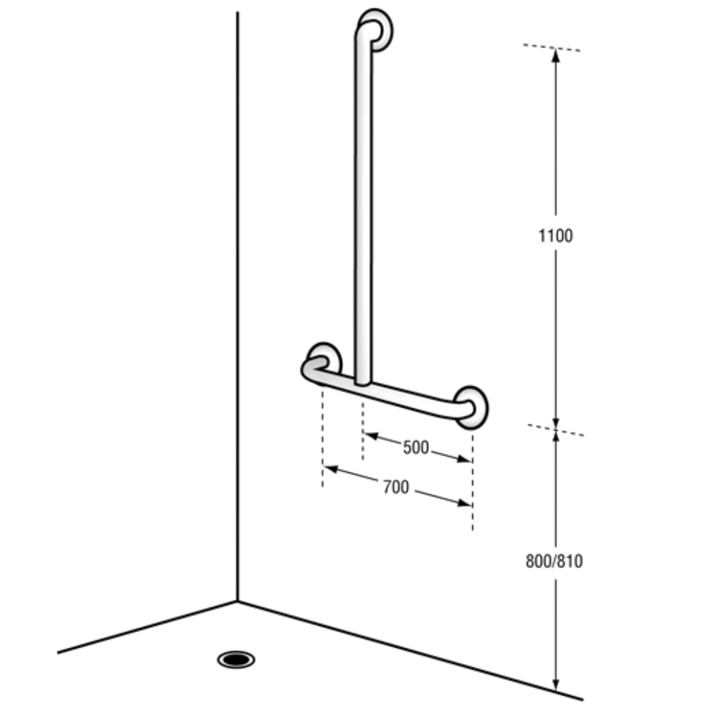 Bariatric Offset Flush Mount Shower LH Grab Rail in Satin Stainless Steel
