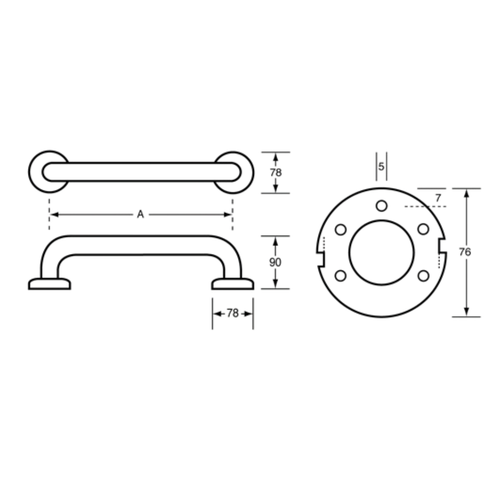 900mm Straight Bariatric Grab Rail in Satin Stainless Steel