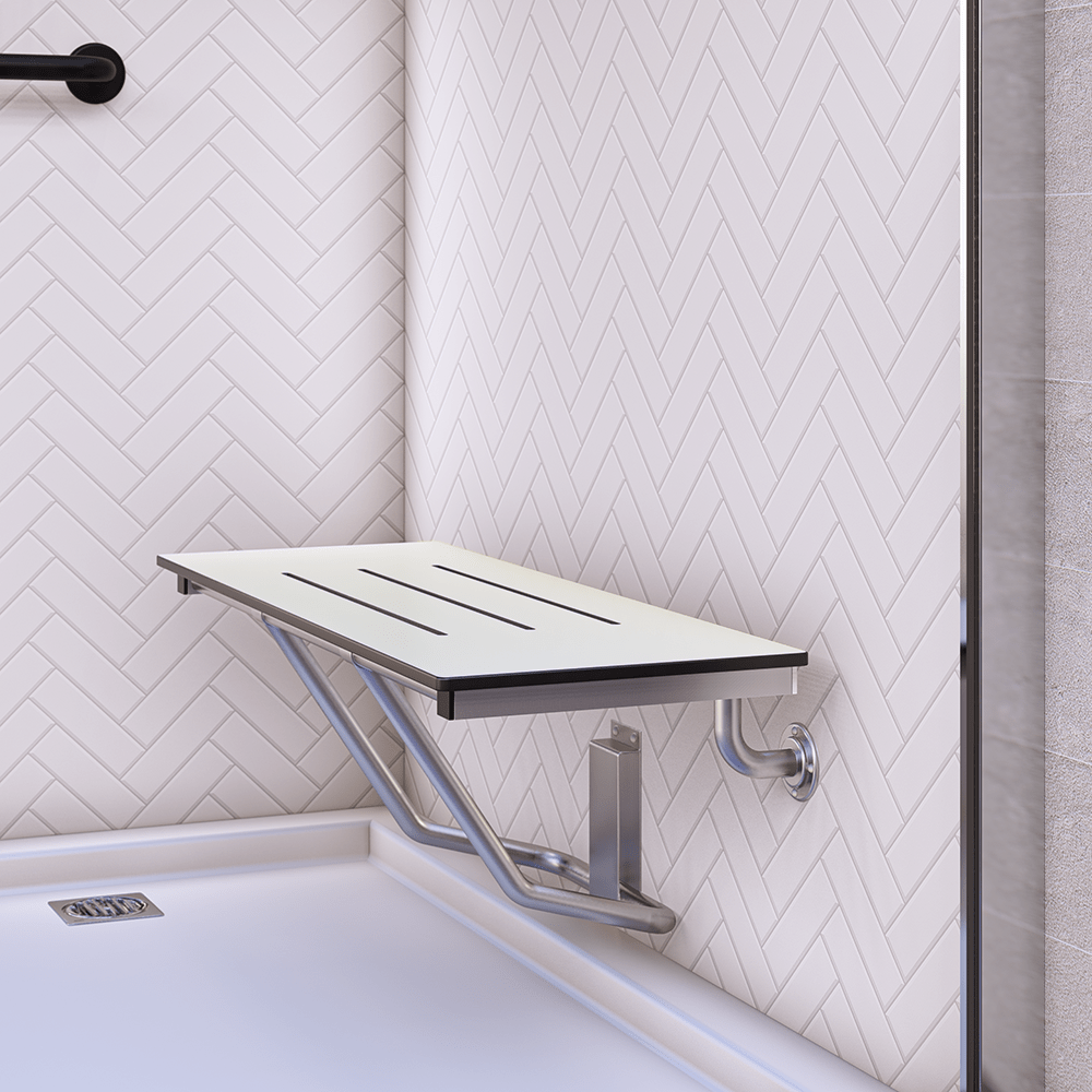 Accessible Folding Shower Seat Compact Laminate in Designer Black